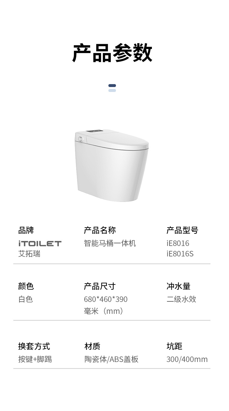 產品型號:iE8016S 智能馬桶