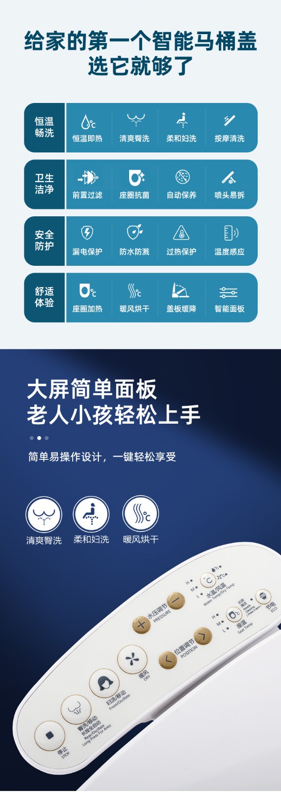 6、4檔風溫、水溫、座溫可調(diào)節(jié)、